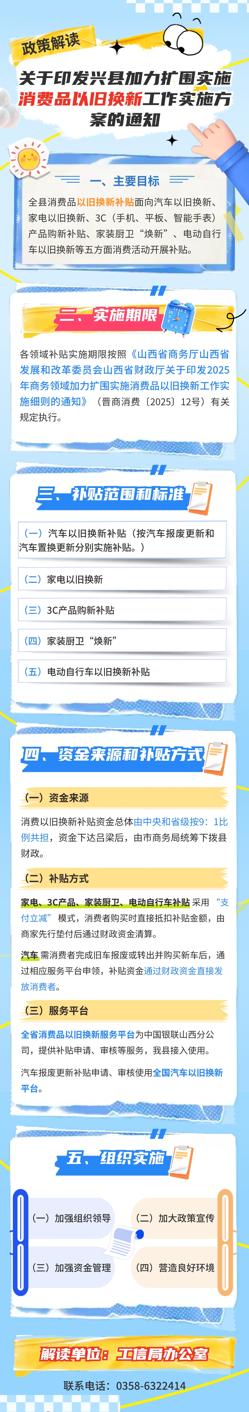 文件链接:兴县人民政府办公室关于印发兴县加力扩围实施消费品以旧换新工作实施方案的通知