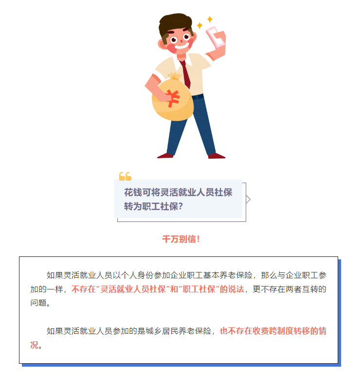 养老保险政策解读(一百零五)花钱可转职工社保?关于灵活就业人员参保,这些谣言别信!