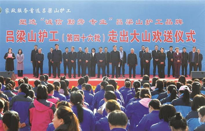 2021年7月我市在国家知识产权局成功注册“吕梁山护工”品牌商标,2022年9月“吕梁山护工”特色劳务品牌助力乡村振兴的经验做法受到国务院通报表扬。根据规划,“十四五”期间我市将再培训护工6万人。此次欢送的吕梁山护工是今年培训的第一期学员,3月1日开班,共2232人参训,经过49户家政公司招聘,1249人就业,就业率达56%。