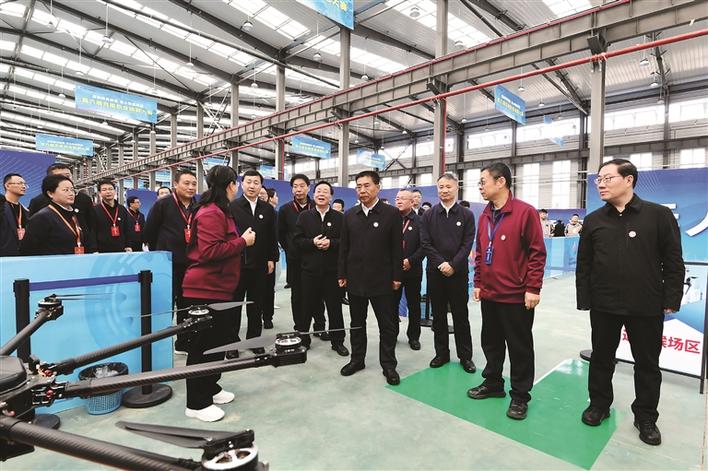 图为市委书记孙大军等领导在第六届吕梁职业技能大赛比赛现场观摩。 记者 王益炜 摄