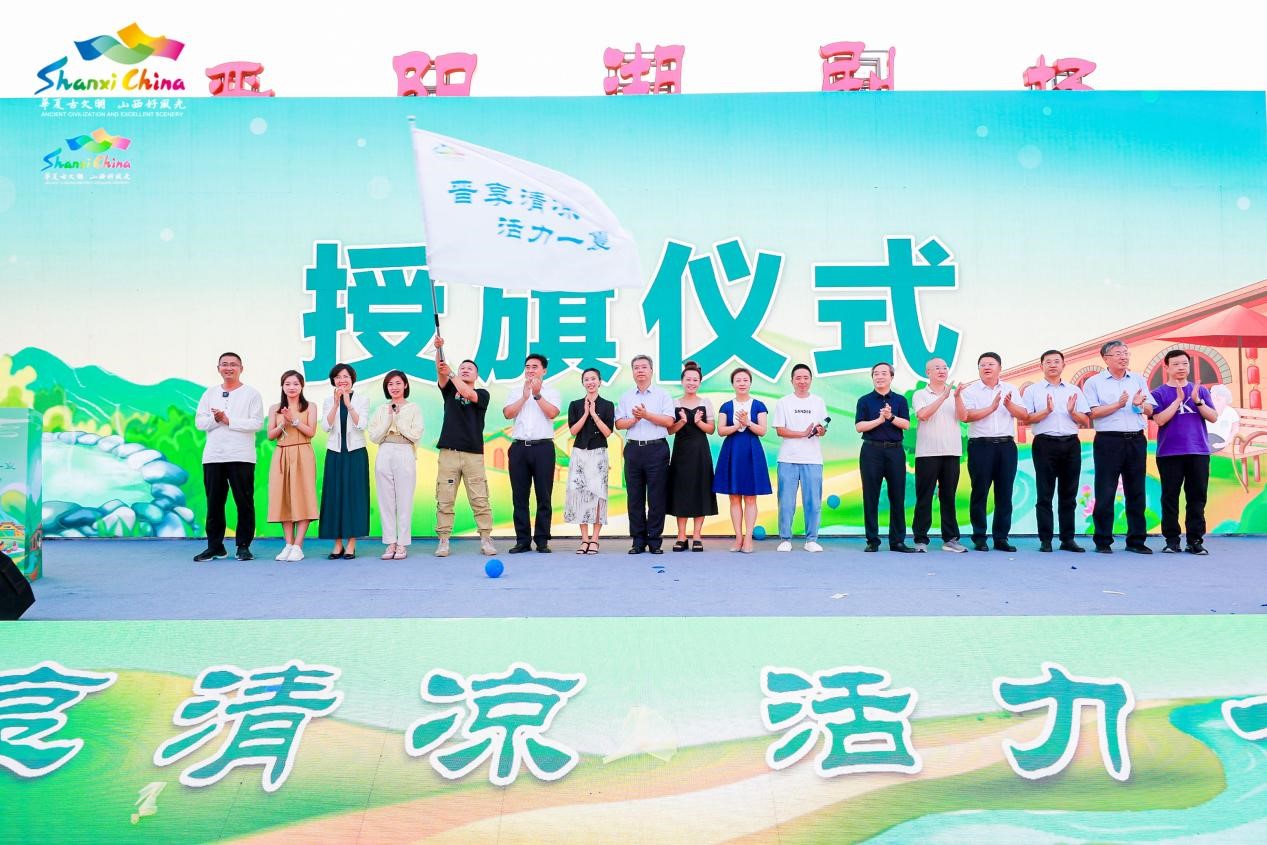 7月31日下午,由山西省文化和旅游厅主办的“晋享清凉 活力一夏”山西文化和旅游主题季活动在太原晋阳湖剧场启动。省委宣传部副部长、省电影局局长骞进向“山西好风光”达人采风团代表授旗。省文化和旅游厅厅长王爱琴、山西广播电视台台长刘英魁、人民日报山西分社社长胡健、省委网信办副主任郭江坪、省文化和旅游厅副厅长李贵、山西日报社副社长宋建平、太原市委宣传部部长杨继承、太原市人民政府副市长李永强等领导登台为达人团鼓劲助力,号召各类媒体平台和所有喜爱山西的自媒体达人共同点亮表里山河的文旅之光。