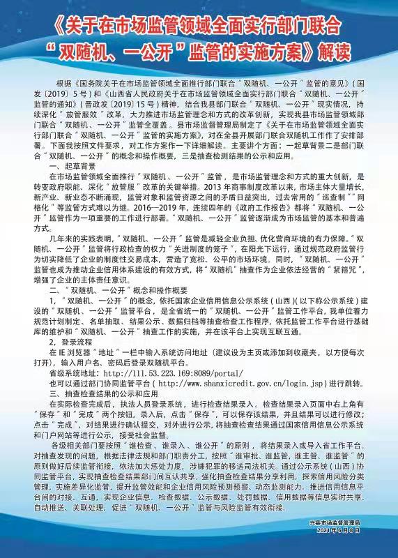 【图解】兴县市场监督管理局关于《在市场监管领域全面实行部门联合“双随机、一公开”监管的实施方案》的政策解读