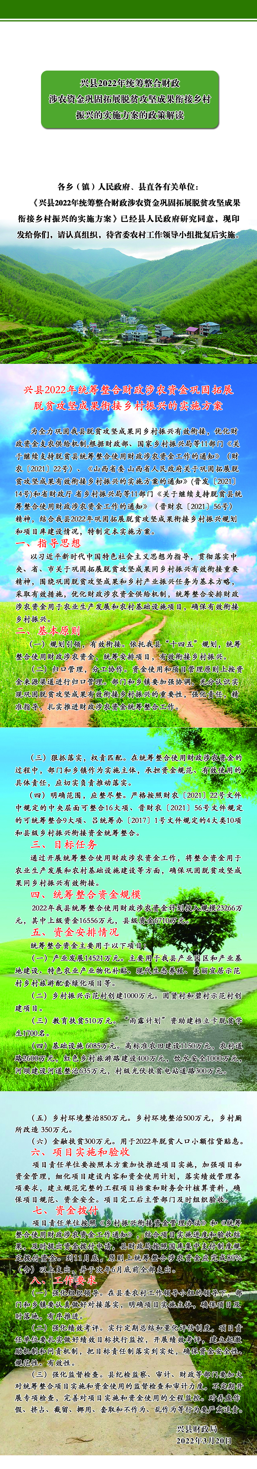 文件链接:兴县人民政府关于调整兴县2022年统筹整合财政涉农资金巩固拓展脱贫攻坚成果衔接乡村振兴实施方案的通知