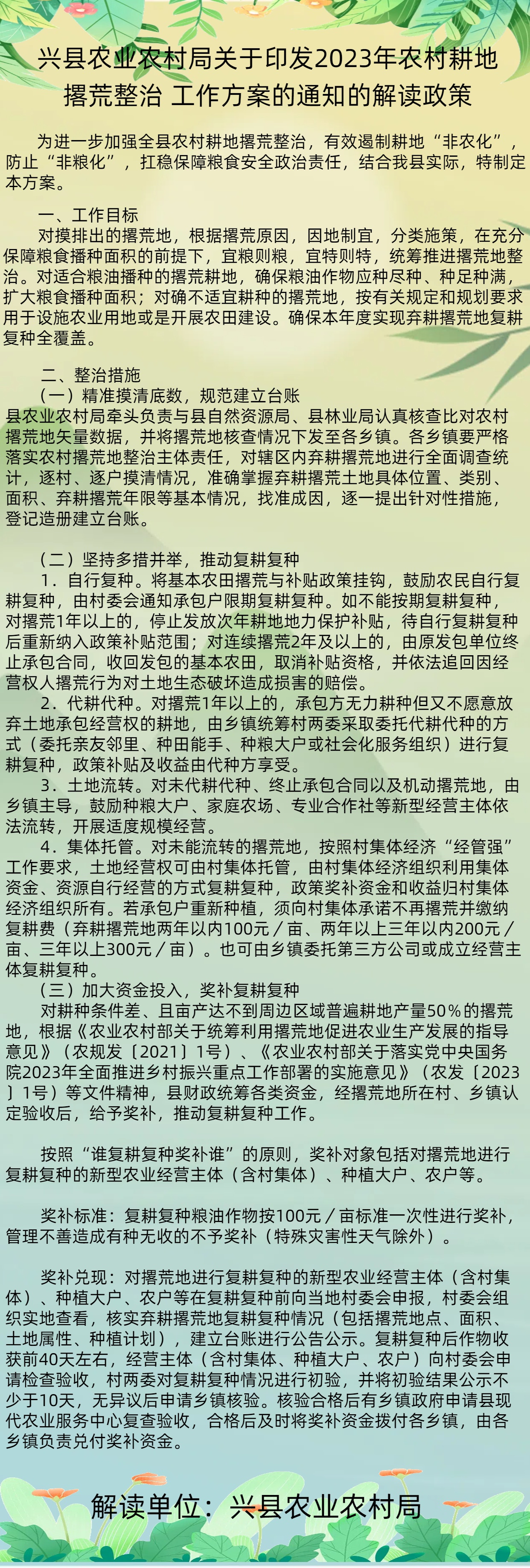 文件链接:兴县人民政府办公室关于印发2023年农村耕地撂荒整治工作方案的通知