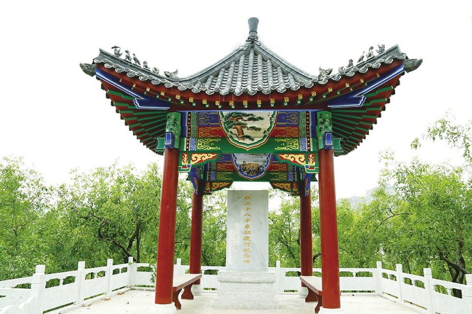 再往前,黄河滩的枣林边矗立着一块石碑,上面刻着“红二十八军东征渡河纪念碑”。讲的是,1936年3月31日晚,为配合东征红军主力作战,红二十八军在军长刘志丹、政委宋任穷等指挥下,由陕西省神木县享负盛名的天台山下登船,强渡黄河。当红军出其不意接近河东岸时,敌人急忙以火力阻击。战士们冒着枪林弹雨,奋勇冲上岸,拔掉了两个中心碉堡,夺取了李家梁。又经过一场激战,击溃敌部一个营的守军,击毙营长梁宏元,占领了罗峪口。接着一部向北占领了黑峪口,摧毁了黄河东岸敌人30公里的防线。随后,红二十八军向南进入临县白文镇,与东征红军左路军红二十五军团会合,配合在晋西作战。