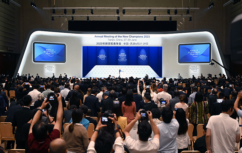 这是2023年6月27日拍摄的第十四届夏季达沃斯论坛开幕式。新华社记者 赵子硕 摄