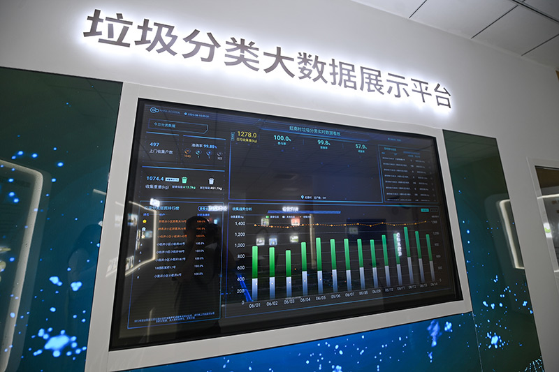 这是2023年6月15日在浙江省嘉兴市秀洲区王江泾镇虹南村拍摄的垃圾分类数字化大屏,可以实时显示村民当天垃圾分类的实行情况。新华社记者 徐昱 摄
