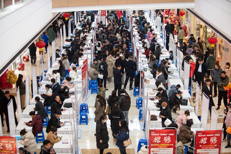 这是2024年1月5日在宁夏石嘴山市万达广场拍摄的宁夏回族自治区就业援助月专项服务活动现场。新华社记者 李旭伦 摄