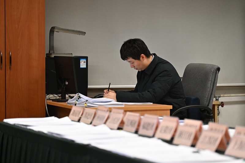 3月6日,财政部工作人员根据代表的意见建议对预算报告进行对照、研究。新华社记者 李贺 摄