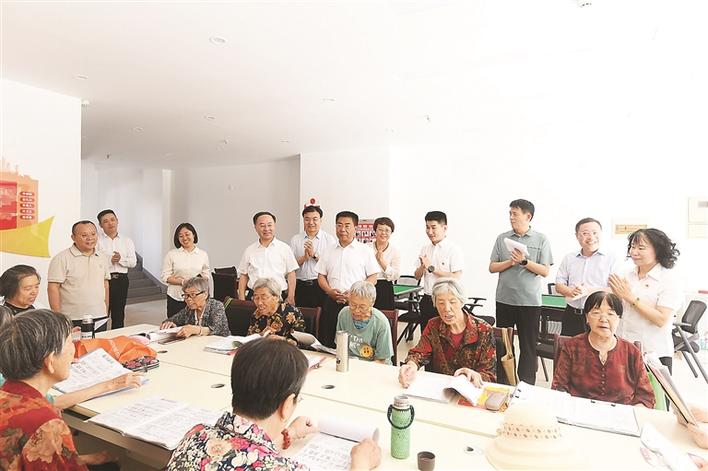 图为市委书记孙大军在中阳楼街道方泰苑东社区调研指导医养结合工作, 观摩健康小屋运行情况。 记者 王益炜 摄
