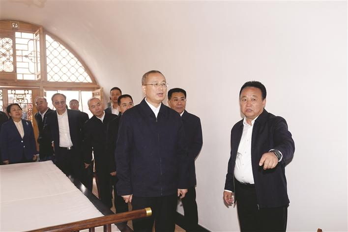 图为省委副书记张春林在市委书记孙大军等领导的陪同下在石楼县崖头村考察乡村旅游示范村建设情况。 记者 王益炜 刘亮亮 摄