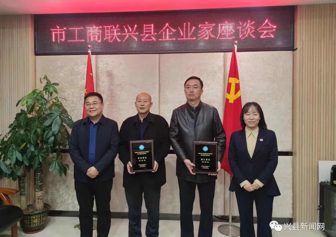 座谈会上,还为吕梁市工商业联合会(总商会)第三届执行委员会执行委员颁发了牌匾。兴县亚龙农业、和盛实业、清泉醋业、东鑫煤炭、山花烂漫、晋绥黄河湾、元泰高导七家企业负责人参加了座谈。