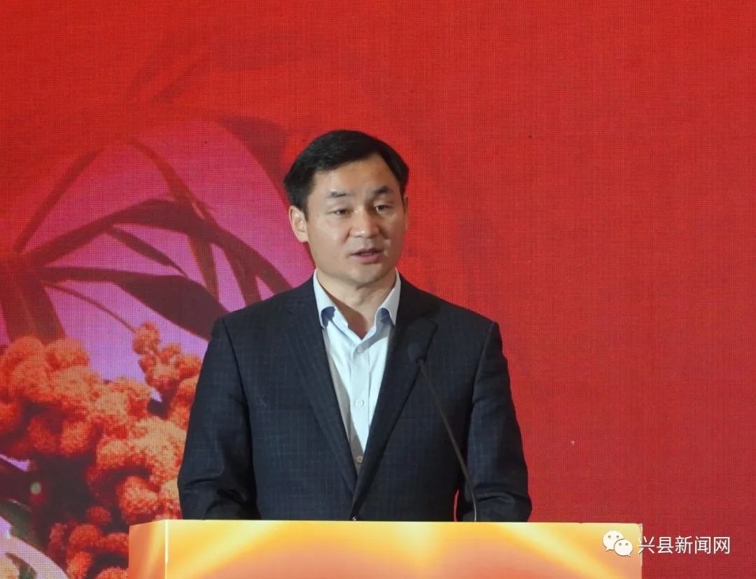 12月19日,“兴县杂粮”区域公用品牌发布暨消费助农对接会在太原召开。山西省延安精神研究会会长岳普煜,中国农科院作科所党委副书记、纪委书记赵长军,山西农业大学党委常委、副校长李捷出席。市政协副主席、县委书记乔云致欢迎辞并就区域公用品牌进行推介。山西省商务厅二级巡视员李强,中国农科院作科所成果转化与基地处处长肖永贵,山西省商务厅市场体系建设处处长韩晋成,吕梁市人民政府副秘书长裴剑英,吕梁市农业农村局局长陈林强,吕梁市商务局局长吴海明,山西省名优土特新产品协会会长王学苏,山西省粮食行业协会常务副会长兼秘书长、中粮协杂粮分会秘书长刘玉发,太原中华文化促进会常务副主席兼秘书长、太原市民间文艺家协会副主席牛曜春出席。县委常委、统战部部长王改艳,县委常委、宣传部部长武军,县委常委、副县长刘慧,副县长李茂等参加。