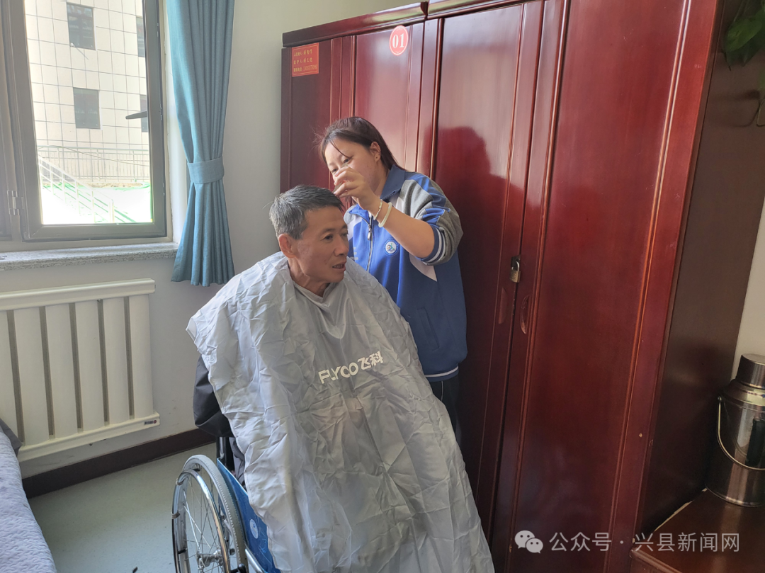 与此同时,来自兴县顺风公益联合会、鑫德医院和职业中学的志愿者、工作人员和学生们还为老人们提供了免费的健康检查和理发服务。