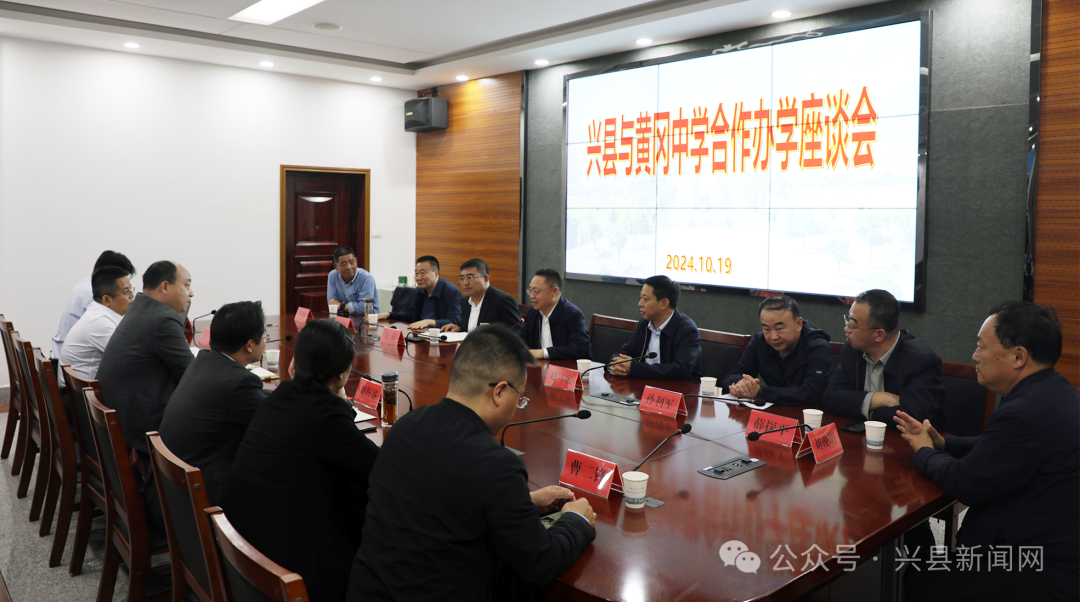 10月19日,吕梁市政协副主席、兴县县委书记乔云,吕梁市教育局党组书记、局长赵雪宏带队赴黄冈市考察交流教育教学工作并参加兴县与黄冈中学合作办学座谈会。黄冈市教育局党组书记、局长何兰田,黄冈中学党委书记洪程,黄冈中学党委副书记、校长刘折谷,兴县人民政府副县长张超,黄冈中学副校长高翔(挂职),黄冈中学教育科技有限公司董事长桂亮华,黄冈市教育局体育卫生与艺术教育科长尹兆璋参加。