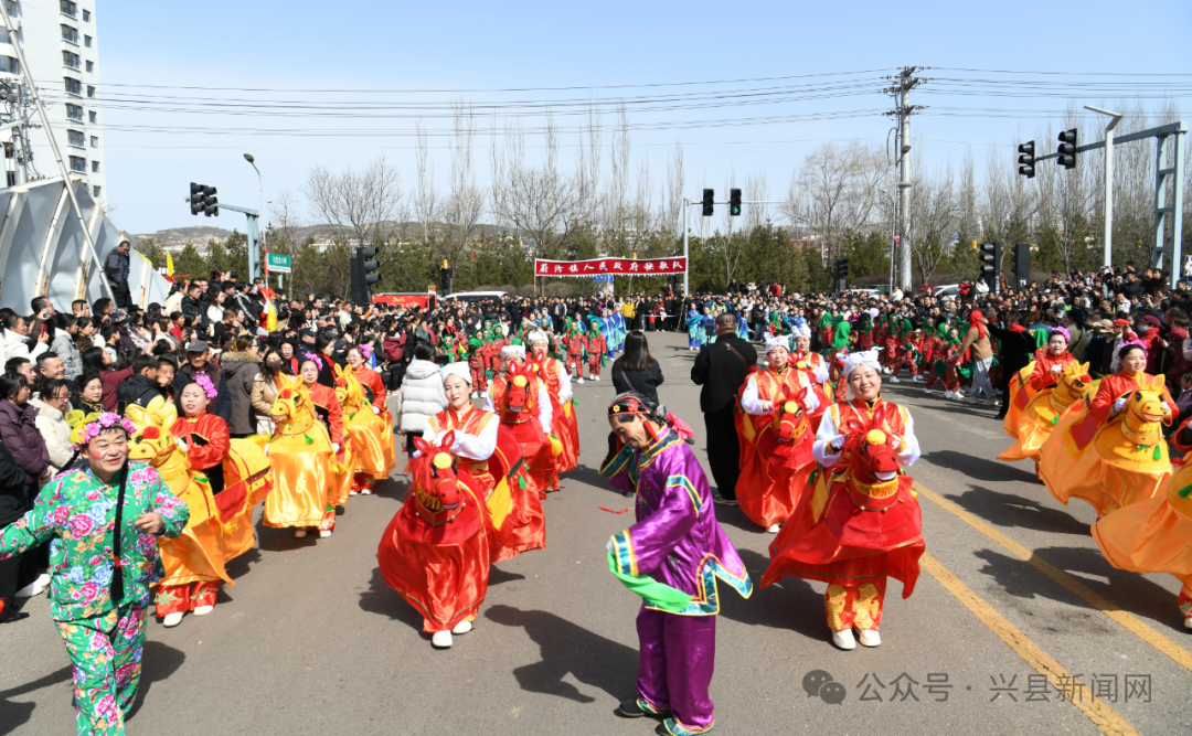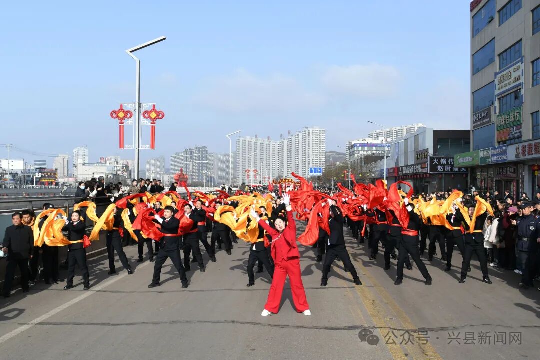 金龙辞岁,福马迎春。农历丙午马年正月十五(3月3日),元宵佳节,兴县蔚汾河畔锣鼓震天、彩旗飘扬、人潮涌动,一年一度的元宵节秧歌巡街展演在此隆重举行。全县18支秧歌队盛装齐聚,以一场融汇传统底蕴与时代风采的民俗文化盛宴,热情欢庆佳节,喜迎新春,为全县人民献上了一场年味十足、喜庆热烈的视觉与文化大餐。