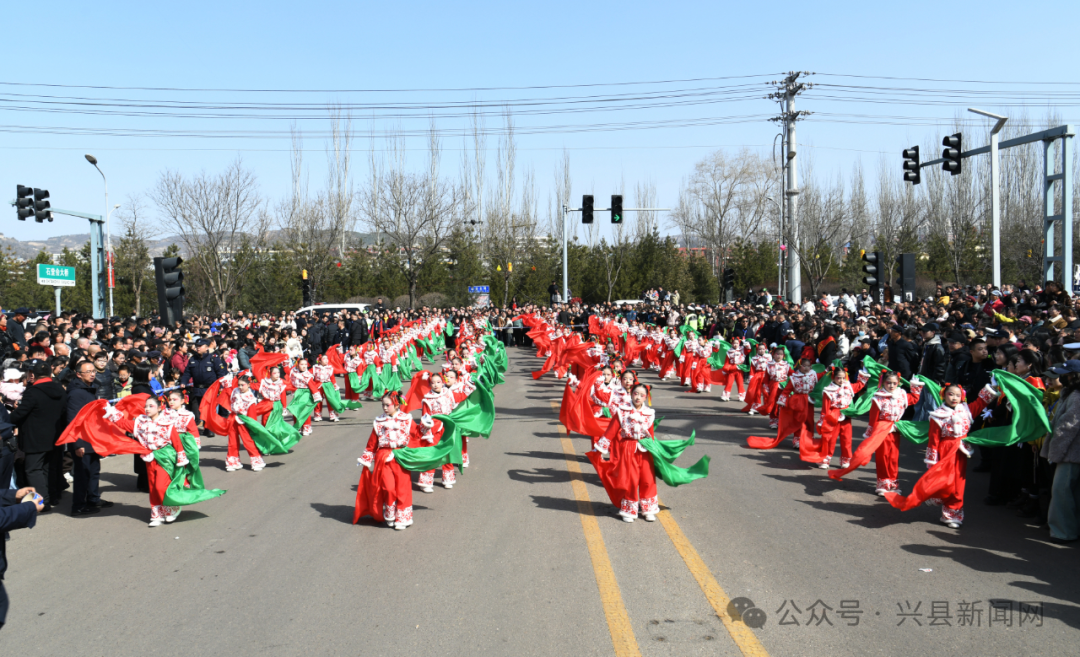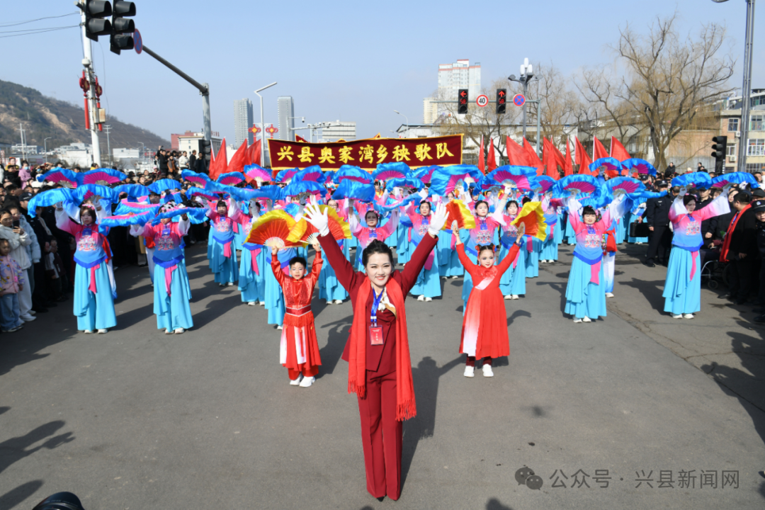 沿途街道两侧,早已被闻讯而来的市民围得水泄不通。人们扶老携幼,翘首以盼,纷纷举起手机、相机,争相记录下这精彩瞬间。掌声、喝彩声、欢笑声与激昂的鼓乐声交织在一起,节日的喜庆与暖意弥漫在街头巷尾。“每年正月十五看秧歌,是咱兴县人雷打不动的习惯。这锣鼓一响,年味就足了!”一位老兴县人的话语,道出了大家对这一传统习俗的深厚情感。活动现场,既有专程返乡感受家乡年味的游子,也有追逐嬉戏、笑声不断的孩童,浓浓的年味与升腾的“烟火气”深度交融,民俗文化与群众的获得感、幸福感同频共振。